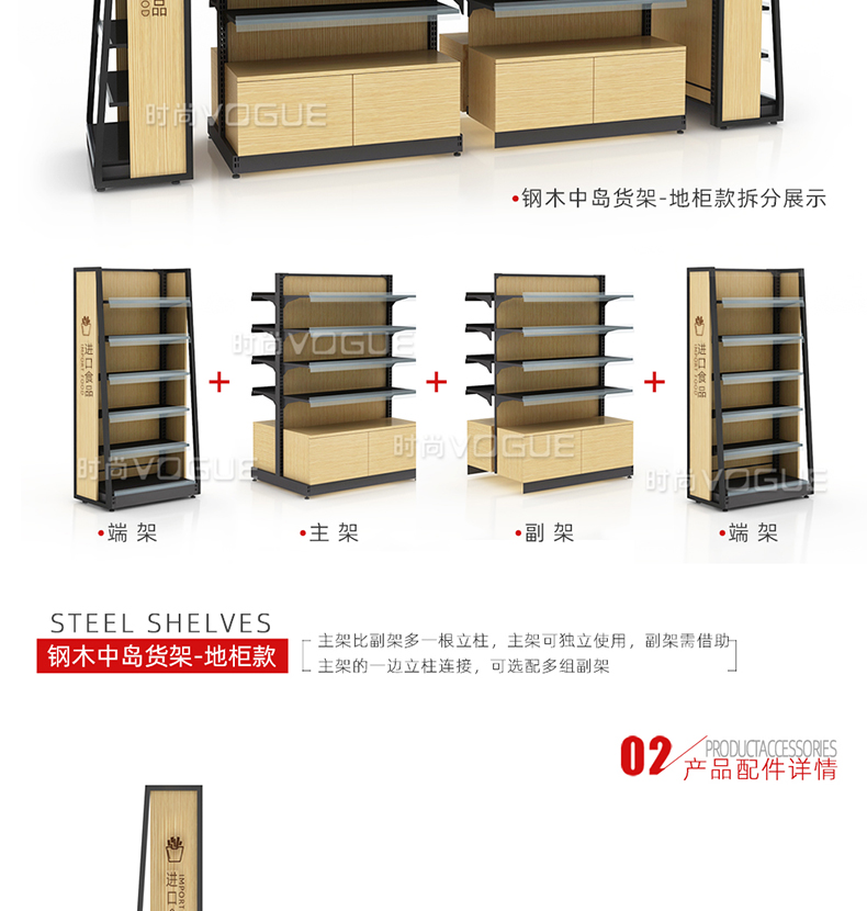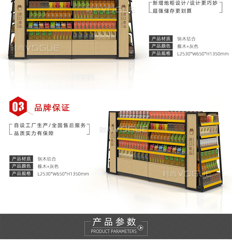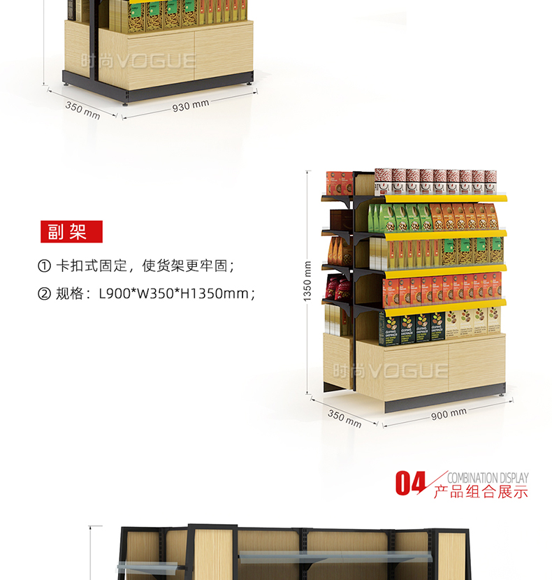 - 產(chǎn)品描述:本款木背板食品貨架是便利店貨架廠家最新推出的一款便利店貨架,底部地柜設(shè)計(jì)增加儲(chǔ)物功能。
