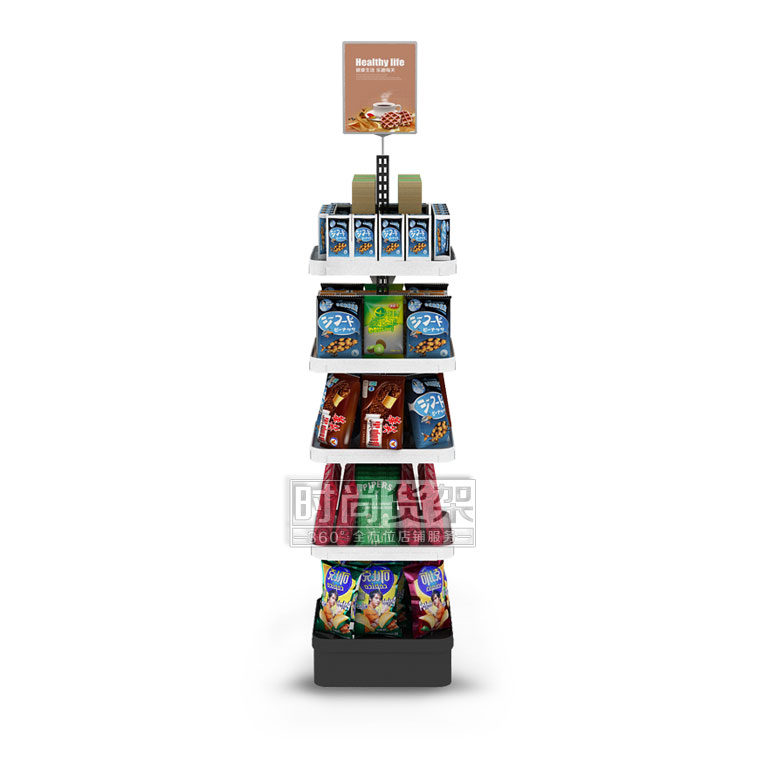 本款小型促銷架是時尚貨架為便利店設計生產(chǎn)的促銷展示架,更多便利店休閑區(qū)貨架,可訪問:http://www.yuanyangcm.com/store/xxq/