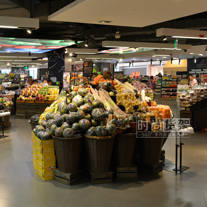 【產(chǎn)品名稱(chēng)】超市果蔬促銷(xiāo)籃/超市生鮮堆頭/方形藤框果蔬促銷(xiāo)臺(tái)