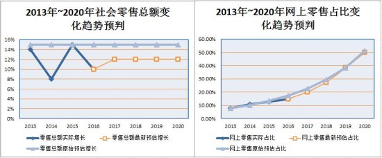 根據(jù)國家統(tǒng)計局?jǐn)?shù)據(jù),4年來,中國零售總額的增長雖較2012年之前的15%有所放緩,但仍保持著平均每年12%的增速;而網(wǎng)上零售總額占比雖然每年持續(xù)增長,整體上卻沒有預(yù)估數(shù)據(jù)那么理想。