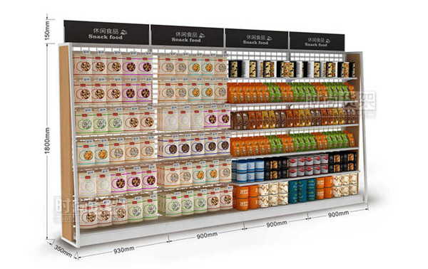 上圖所示是應(yīng)用于便利店食品區(qū)域的單面食品貨架。便利店單面食品貨架采用了通透性更強(qiáng)的網(wǎng)背板設(shè)計(jì),再搭配上簡(jiǎn)約時(shí)尚的木質(zhì)側(cè)板,整體散發(fā)出一種小清新的氣息,營(yíng)造出新時(shí)代便利店精致、高端的店鋪形象。