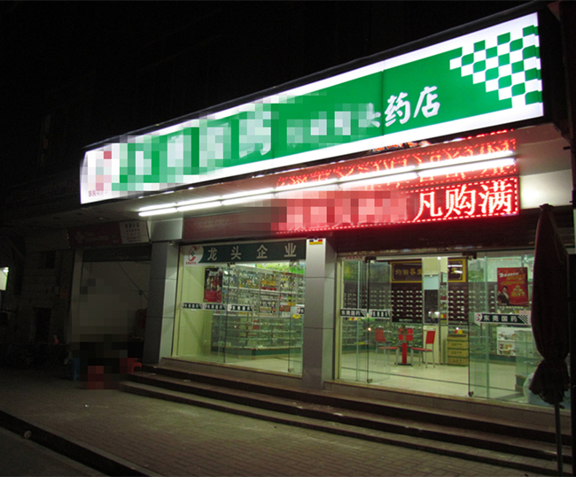 可以在藥店店招下面配備一個LED顯示屏,滾動播放一些打折促銷消息或新到的藥品名稱,讓顧客在進店前就能對藥店有個大致的了解。