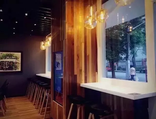 櫥窗前的原木色墻面和白色桌面,在暖黃色的燈光下透露出溫馨,讓顧客眼前仿佛不再是便利店而是一間咖啡店,使人忍不住想進(jìn)店看看里面都有些什么。