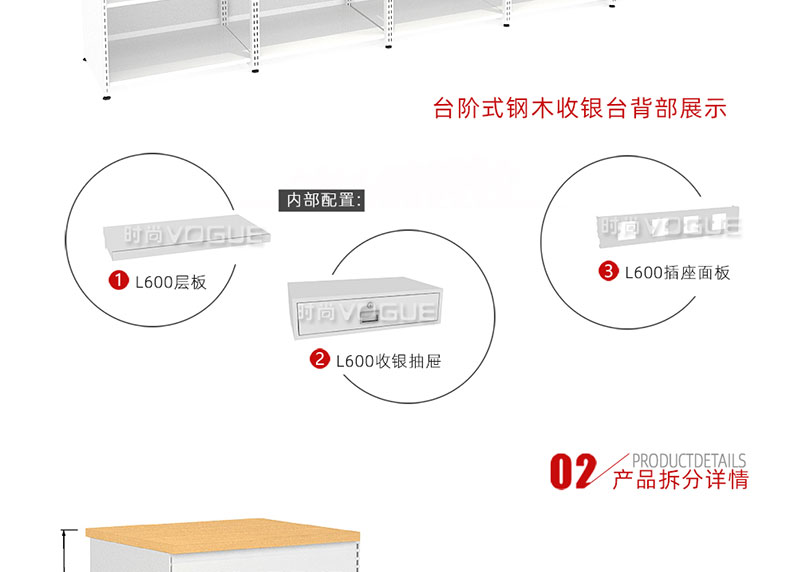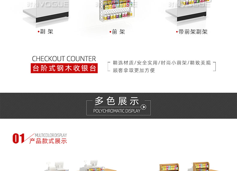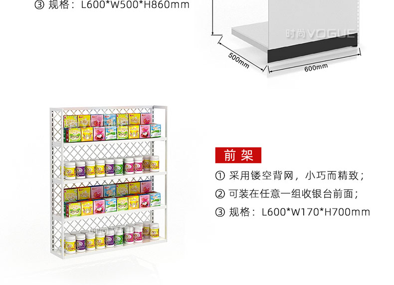 - 產(chǎn)品描述:這是時(shí)尚貨架針對(duì)母嬰店收銀區(qū)陳列最新推出的一款組合式收銀臺(tái)。