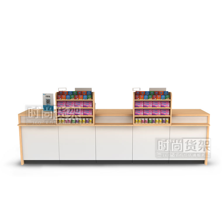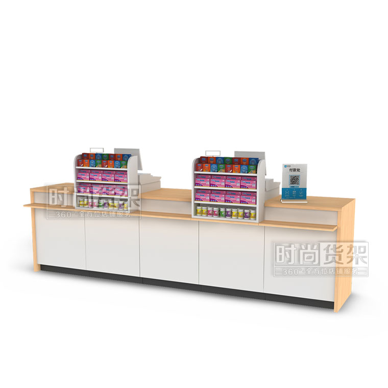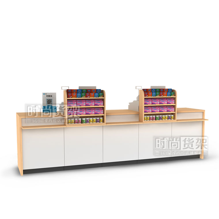 - 產(chǎn)品描述:這是時(shí)尚貨架最新打造的一款適用于各類藥店收銀區(qū)使用的藥店經(jīng)典組合式收銀臺(tái)。