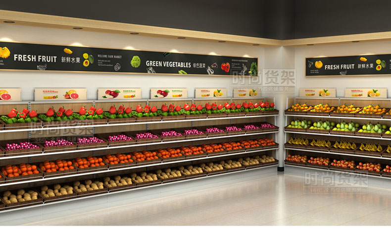 本款便利店蔬果架是由時尚貨架設(shè)計生產(chǎn)的一款木背板單面果蔬架。如需了解其他款式,可以選擇便利店網(wǎng)背板果蔬架,果蔬生鮮促銷籃等便利店果蔬區(qū)貨架。