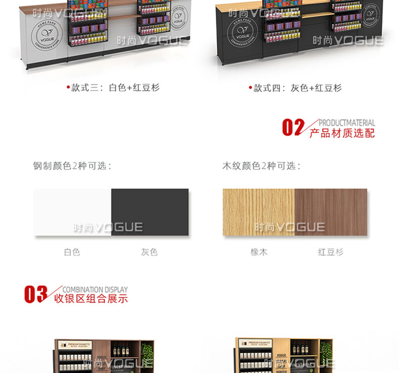 【樣式】主柜+轉(zhuǎn)角柜+側(cè)柜+后柜,可配置小前架、置物板、收銀抽屜