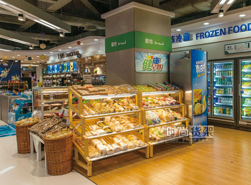 超市貨架_實(shí)木面包架