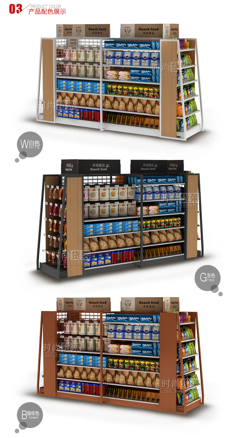 【特點】超市食品貨架的層板高度可以根據(jù)商品大小自行調節(jié),能靈活適應各種尺寸不同的商品做陳列,達到最好的展示效果,增強店鋪對于顧客視覺上的舒適度,更能獲得顧客的好感。