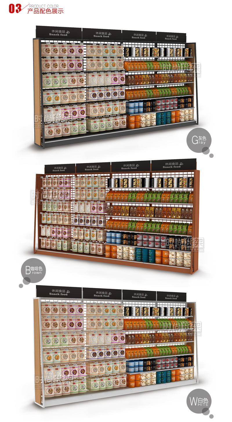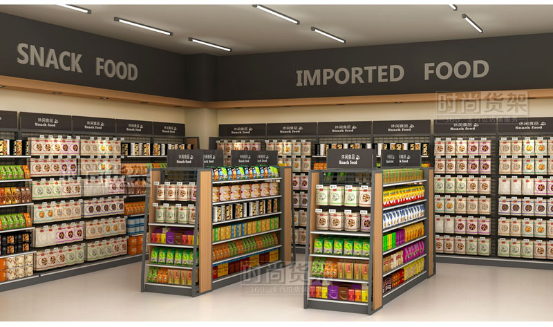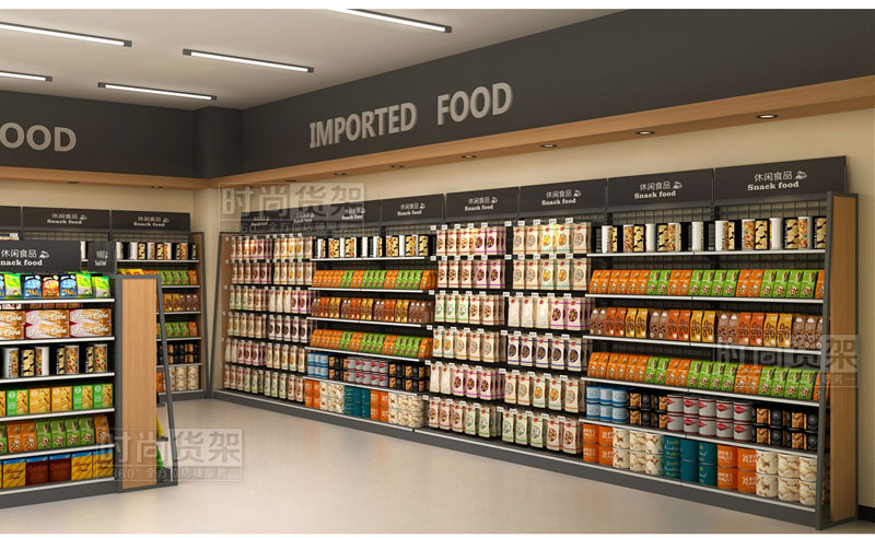 這是時尚貨架專為超市食品區(qū)打造的超市單面零食貨架,想了解超市雙面食品貨架請點擊:http://yuanyangcm.com/supermarket/spzsq/103.html。