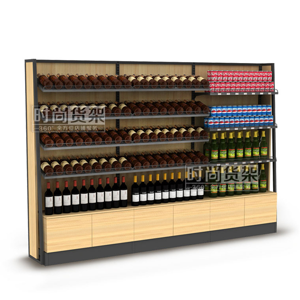單面紅酒貨架是深圳貨架廠時(shí)尚貨架專為超市紅酒區(qū)打造的陳列道具,冷軋鋼材質(zhì)的框架使其擁有更強(qiáng)大的承重性能。