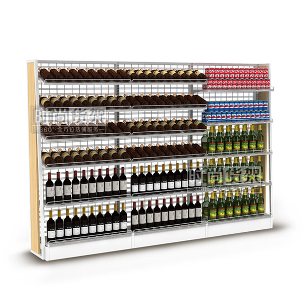這款超市貨架專用于紅酒商品的陳列,是時尚貨架專為超市紅酒區(qū)打造的陳列道具,具有極佳的展示效果。