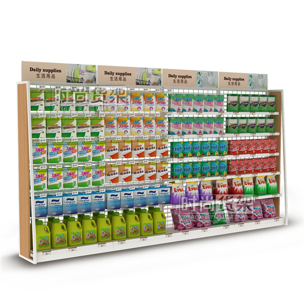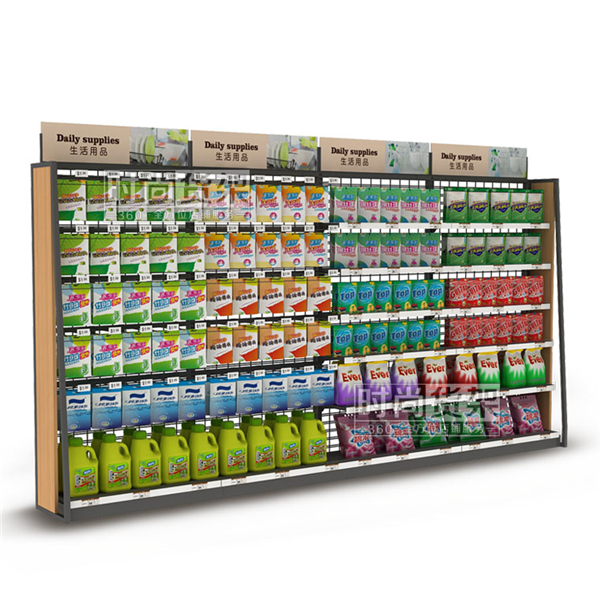 超市生活用品貨架是一款適用于超市生活用品區(qū)的單面靠墻貨架,想要了其他超市貨架,請(qǐng)咨詢時(shí)尚貨架客服。